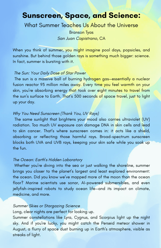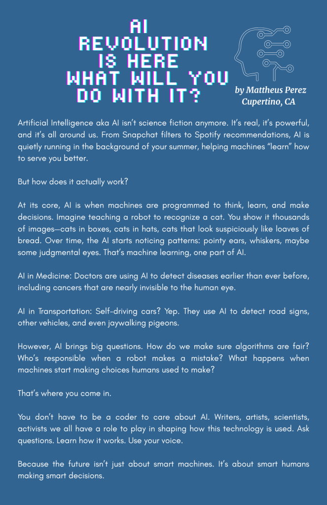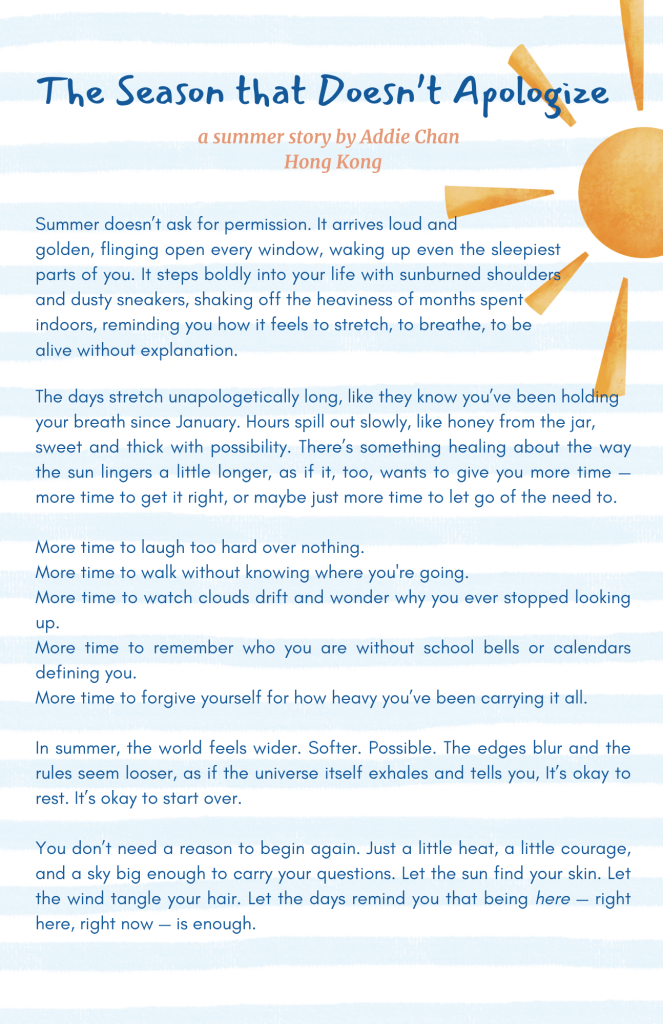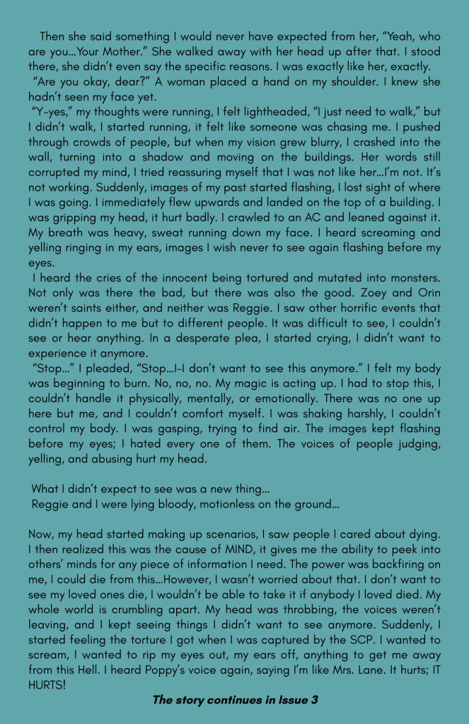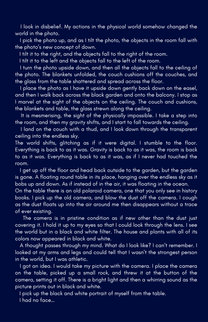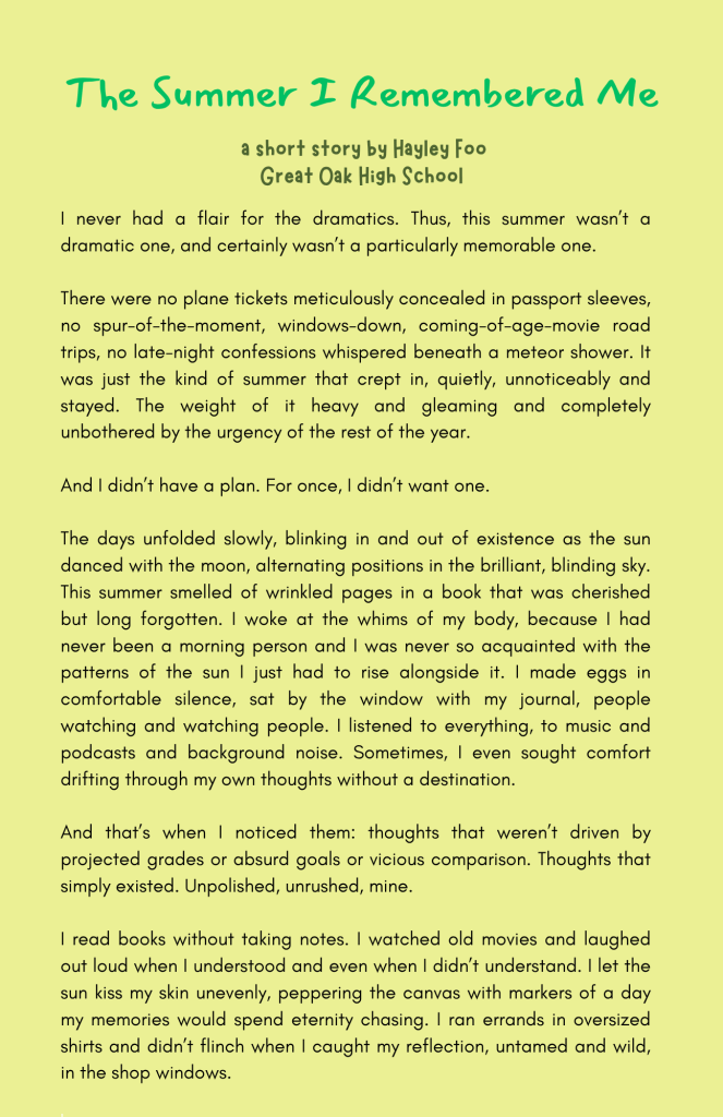 Our creative writing and arts section showcases bold voices, unique stories, and stunning visuals from teens who dare to dream, create, and inspire.
